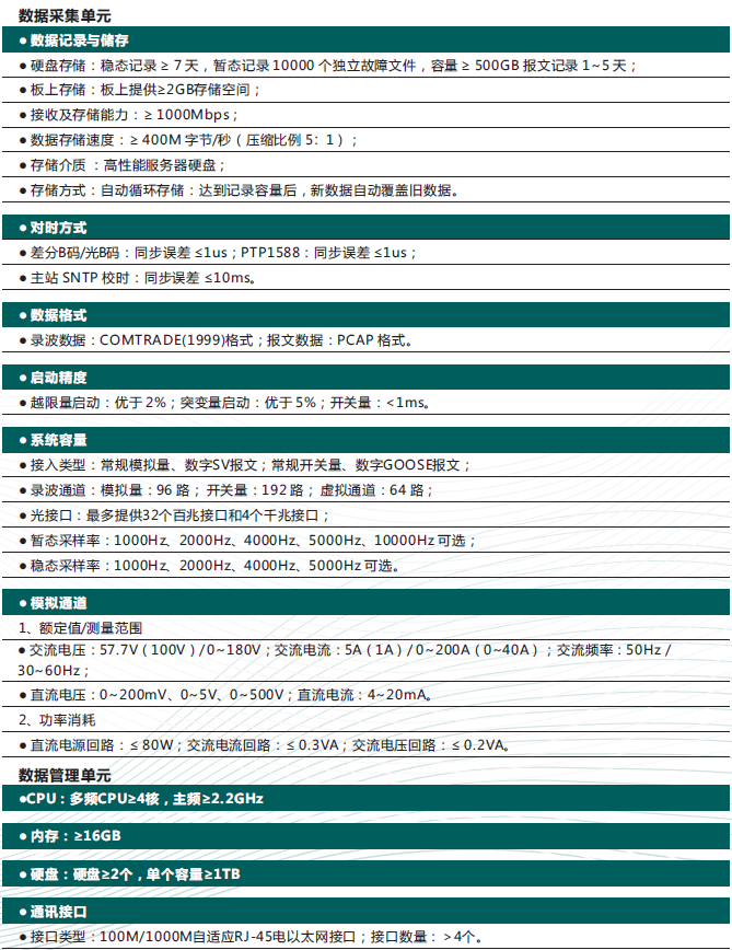 具備實時監測、故障錄波、穩態錄波、手動錄波功能。