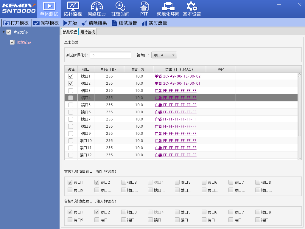 測(cè)試交換機(jī)端口鏡像功能,包括單個(gè)端口、多個(gè)端口、輸入、輸出等數(shù)據(jù)流鏡像到某一個(gè)端口。